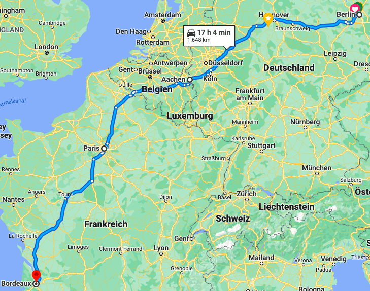 Tag 1, Berlin - Bordeaux (1.600 km)
