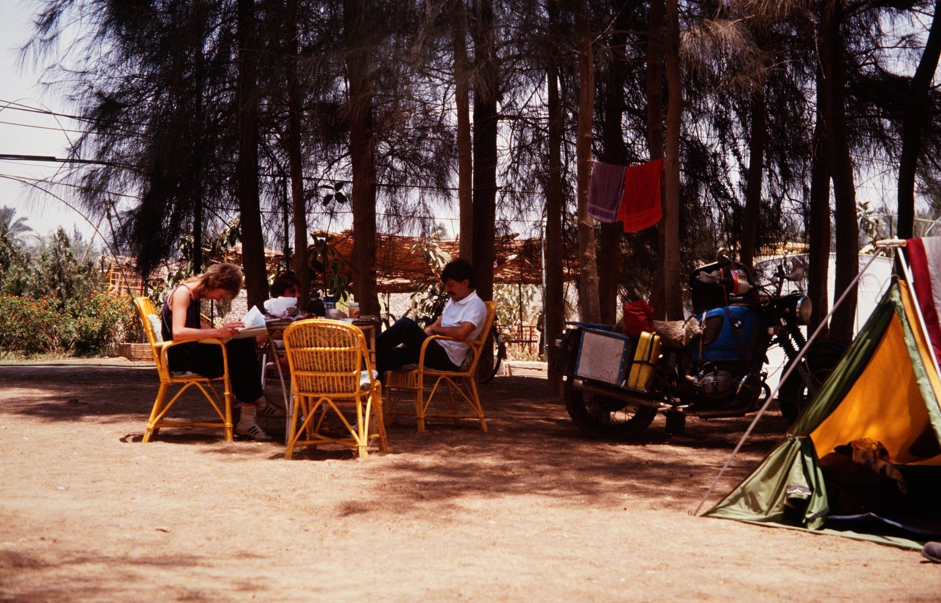 Auf dem Platz steht eine weitere BMW aus Bremen alleine vor einem Zelt, abends kommt der Besitzer genervt mit dem Taxi an. Seine Lichtmaschine ist durchgeschmort und er kämpft seit einer Woche mit dem ADAC und dem ägyptischen Zoll. Erst wollte der ADAC das Ersatzteil nur nach schriftlicher Bestätigung einer Fachwerkstatt schicken, dann haben sie es geschickt, aber nicht mit den richtigen Zollerklärungen, nun liegt seine Lichtmaschine sicher verpackt beim Zoll am Flughafen von Kairo und er darf sie nur abholen, wenn er ca. 1.000 £ zum Staatskurs Einfuhrzoll bezahlt, also fast 900 DM. Dreimal mehr als das Ding in Deutschland kostet. Heute hat er aber mit dem Boss des Flughafenzolls aushandeln können, dass er die Lichtmaschine zu seinem Carnet de Passage hinzufügen kann. Der Zoll also nur fällig wird, wenn er das Motorrad in Ägypten lässt. Eigentlich wäre der ADAC für den zollfreien Versand zuständig gewesen. Aber scheinbar fehlte in München die Zeit oder die Energie sich um solche Details zu kümmern.
