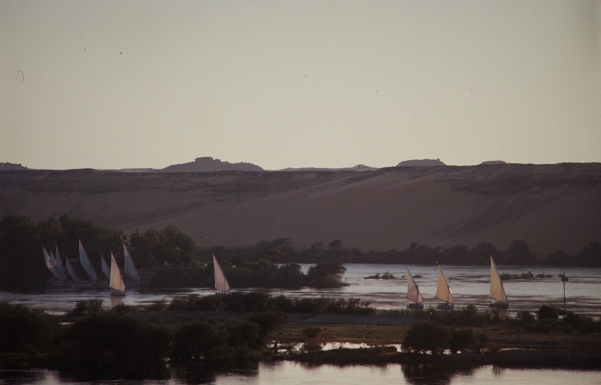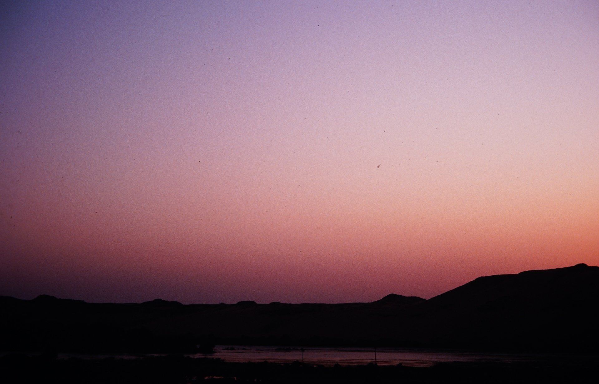 Di., 16. Juni 1987, Sonnenuntergang über dem Nil, Assuan