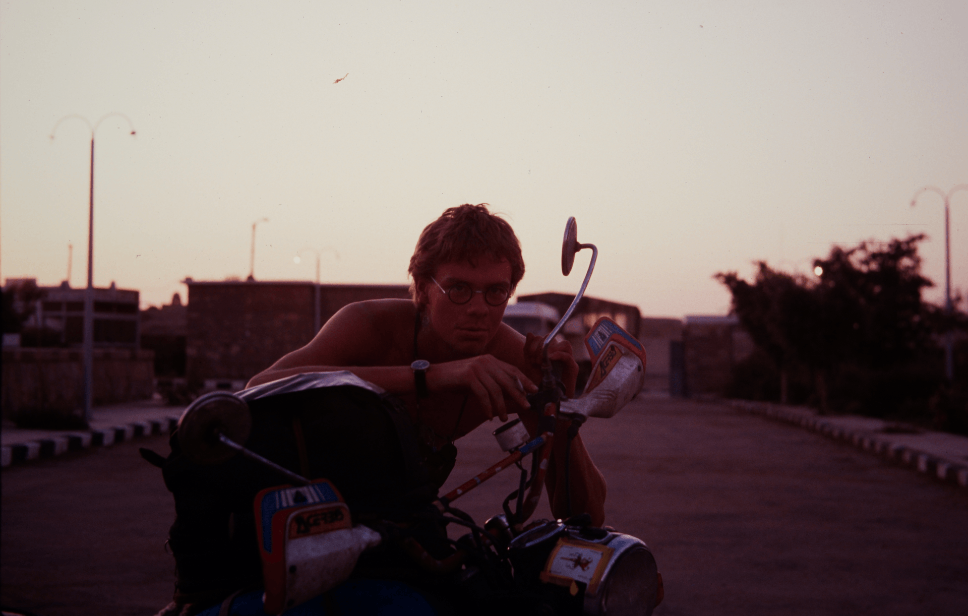 »Naja, Elektronik ist es jedenfalls. Das haben die Österreicher mit Ihrem Röntgengerät an der yugoslawischen Grenze bestätigt. Ein Zolldokument für Bulgarien habe ich aber wieder nicht mitbekommen. In den Ostblock darf es nicht, aber für unseren Freund Saddâm ist es normal...« Ein Kellner kommt mit der Vorspeisenplatte, einem zweiten Gedeck und einer weiteren Flasche Weißwein. Jan schenkt mir ein, hebt sein Glas und sagt ›Auf die internationalen Geschäfte!‹. Jetzt musst Du aber was essen und von Deiner Tour erzählen, normal, oder?«. Der Wein ist überraschend gut und ich probiere ein paar der verschiedenen Pasten und gegrillten Gemüsestückchen. Mit einer gefüllten Olive in der Hand sage ich »Eigentlich hat Karl May Schuld.« Ich stecke die Olive in den Mund, nehme noch einen Schluck Wein. »Ich hab‘ die Kara-Ben-Nemsi-Bücher ein bisschen spät, erst mit 15, gelesen und sofort beschlossen, ›das will ich auch‹. Da eine Reise mit dem Pferd mir unpassend vorkam, war ein Motorrad die naheliegende Alternative. Ich habe also die letzten 4 Jahre in der Schule mit theoretischen Reisevorbereitungen verbracht, alles gelesen, was mir zum Thema in die Finger kam, vor anderthalb Jahren diese BMW gekauft und seitdem praktisch jede ihrer Schrauben mindestens einmal in der Hand gehabt.« Jan nickt anerkennend. »Um mit dem einfacheren Teil anzufangen, habe ich schon früh beschlossen, Kara Ben Nemsis Weg entgegengesetzt zu fahren: Yugoslawien, Griechenland, Türkei, Syrien, Jordanien, Ägypten, Libyen, Tunesien, Algerien, Marokko, Spanien, Frankreich, nach Hause. Und letztes Jahr, als ich den 52-Liter-Tank endlich wirklich dicht bekommen hatte, hat Reagan seine Bomber nach Tripolis geschickt. Die libyschen Grenzen wurden geschlossen und ich hockte Stundenlang vor meinen Afrikakarten. Wenn Libyen zu ist, fahr ich halt außen rum, so mach ich‘s mit Libanon und Israel ja auch: in Ägypten den Nil hoch, statt am Mittelmeer lang, dann Sudan, Tschad, Nigeria, Niger, Algerien. Vielleicht gibt es sogar einen direkten Weg vom Tschad nach Niger, das hängt vom Wetter ab, wenn ich da ankomme.« - »Alter Schwede!« Jans Hand schwebt mit einem Stück Brot kurz vor seinem Mund. »Das ist ja ein Mörderding! Hast Du solche Touren schon mal gemacht? Wie alt bist Du, 19? Und alles ganz alleine?« - »20. Ja, alleine, da kann ich selbst entscheiden, was ich tun und lassen will, muss nix diskutieren, nur nachdenken und entscheiden. Und nee, Offroad kenne ich nur vom Truppenübungsplatz und aus der Kieskuhle, aber Motorradtouren mache ich seit ich 16 bin. Dreimal Südfrankreich, einmal Nordspanien.« Jan grinst. »Also doch Normal-Urlaub an der türkischen Riviera.« Er hat mich als Spinner abgestempelt.
