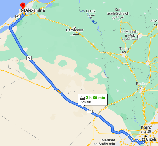 Trotz der vielen Teilnehmer fährt die Karawane einigermaßen pünktlich los. Die Reederei empfiehlt um 18 Uhr am Hafen zu sein, um die Ausreiseprozedur zu beginnen. Um eins fahren wir ein letztes Mal an den großen Pyramiden von Gizeh vorbei und biegen später nach links auf die Desert Road ab. Wir erreichen Alexandria um vier Uhr nachmittags und trinken noch in aller Ruhe einen Kaffee mit Blick auf den Containerhafen.