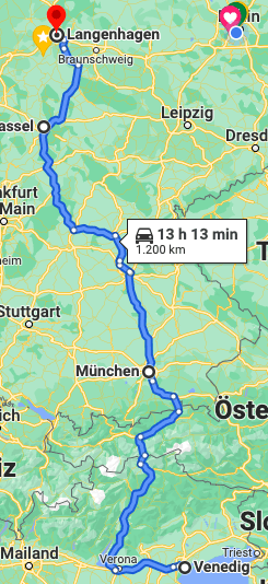 Das Ausschiffen und die Einreise nach Italien dauert nur wenige Minuten. Um halb elf stehe ich wieder auf europäischem Boden. Direkt an der Ausfahrt des Hafens beginnt die Autobahn. Eine lange flache Brücke bringt mich zum italienischen Festland. Ich habe mich für den schnellen Weg nach Hanover entschieden und nehme die Autobahn über Verona, Bozen, den Brenner, Innsbruck und dann auf der A 7 nach Hause.