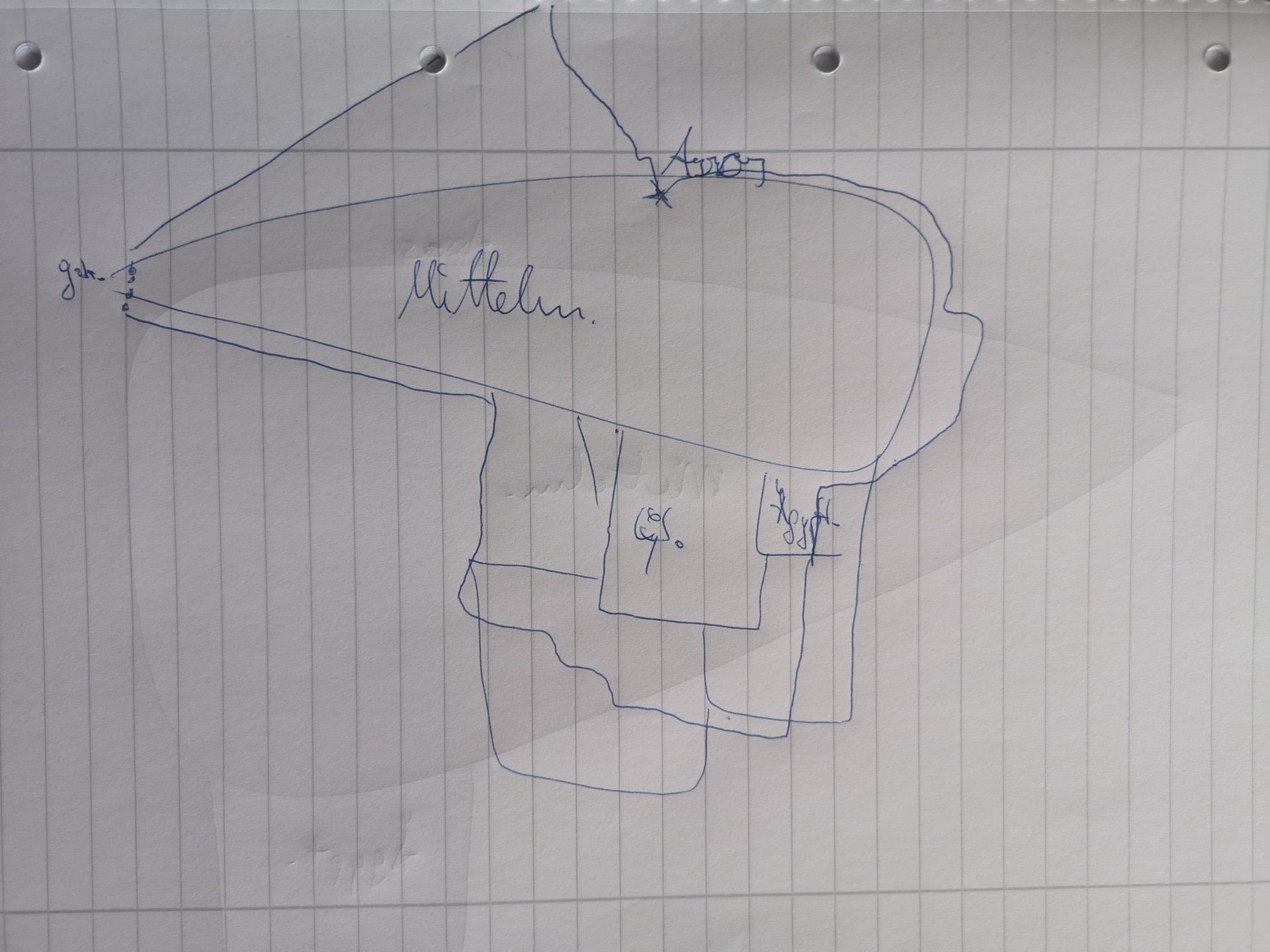 »Ja, hast ja recht. Ich guck mir das morgen mal an«, sagt Peter und lächelt zum ersten Mal seit unserer Begrüßung. »Aber jetzt erzähl‘ mal. Wo geht’s denn hin? Kapstadt? Tom hat nur gesagt ›Ägypten und dann mal sehen.‹ und dass dein Motorrad älter ist als Du.« - »Na, nicht ganz. Sie ist Baujahr ’73, ich ’67. Ich will einmal rund ums Mittelmeer. Und weil Libyen zu ist, muss ich da unten drum‘rum fahren. Sudan, Tchad, Nigeria, Niger und durch Algerien zurück ans Mittelmeer.« - »Respekt!« sagt Peter, »ich muss mal auf’ne Karte gucken, um das zu verstehen. Und wie kommste dann zurück?« - »In Algerien bin ich ja schon wieder halb zu Hause.« Wieder jemand, der das Wort Umrundung nicht versteht. Das kannte ich von zu Hause gut genug. Die meisten Leute glaubten, eine Reise sei, irgendwohin zu fahren und dann zurück zu kommen. Dass eine Reise auch einen Kreis beschreiben kann, war offenbar für viele Leute schwer zu verstehen. Ich hatte in den letzten fünf Jahren gelernt, Geduld für dieses Unverständnis aufzubringen. Ich schlage mein Notizbuch auf, lege es quer vor uns und zeichne ein liegendes Ei auf das Blatt, rechts übertrieben flach, links übertrieben spitz. Das Ei bekommt den Namen ›Mittelm.‹. Oben, rechts der Mitte male ich X ›Assos‹, unten rechts am Ei hängt hochkant ein Rechteck mit dem Namen ›Ägypt‹, links davon ein Quadrat ›Lyb‹, unter ›Ägypt‹ und ›Lyb‹ sind noch ein paar Flächen, zum Teil recht unbestimmt. Am oberen Blattrand in der Mitte startet ein Kugelschreiberstrich, ich erkläre, »da komm ich her, Norddeutschland, runter nach Bayern, Österreich, Yugoslawien, Griehenland, Türkei, Der Stift hält an dem X ›Assos‹, die türkische Küste lang nach Syrien, der Stift ist jetzt rechts an der flachen Seite und etwas entfernt vom Rand des Eis, dann durch Jordanien nach Ägypten, den Nil hoch, Sudan, durch die unbestimmten Flächen unter ›Lyb‹, bis er links von ›Lyb‹ wieder hoch zurück zum Ei und an seinem Rand entlang bis zur Spitze führt. Die Spitze trägt den Namen ›Gibr‹, hier wird der vorher durchgehende Strich zu einer gepunkteten Linie. »In Marokko muss ich dann eine Fähre nach Spanien nehmen. Und der Rest ist eine Urlaubsfahrt.« Marie nickt und sagt »Verstehe.«