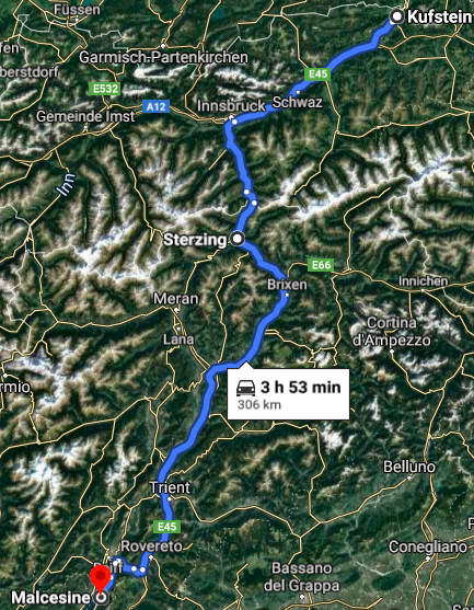 Ich wache am Irschenberg auf, es schneit wieder ein bisschen. Einen guten Teil der Strecke ist Chrischi gefahren, weil Jo ja gleich wieder zurück nach Mainz muss. Ich habe ein paar Stunden geschlafen. Als wir die Grenze passieren, ist es schon fast hell. Die Motorräder sind vorläufig in Sicherheit. Auf einem Rastplatz hinter der Grenze rangiert Chrischi den Transporter wieder rückwärts an eine Verkehrsinsel, die wir zum Abladen benutzen. Kurz danach ist Jo wieder unterwegs nach Nordwesten und wir nach Süden. Die Straßen sind frei und trocken, aber die Wiesen und Hänge rechts und links sind weiß vom Schnee. Mittags sind wir am Brenner. Als wir den Tunnel auf der Südseite verlassen, ist es plötzlich Frühling. Bei angemehmer Temperatur und Sonnenschein fahren wir auf der Autobahn nach Süden. In Rovereto fahren wir ab und nehmen die Landstraße nach Riva am Gardasee. Kurz vor der Stadt biegen wir nach links auf die östliche Küstenstraße ab. In Malcesine ist ein Hotel trotz der frühen Jahreszeit schon geöffnet. Wir stellen die Motorräder auf dem großen Parkplatz neben dem Hotel ab und buchen ein Doppelzimmer. Wir bringen die Klamotten für zwei Nächte in unser Zimmer und setzen uns in das leere Restaurant. Wir scheinen die einzgen Gäste zu sein. Nach einem sehr guten italienisch Abendessen mit ein bisschen lokalem Wein gehen wir müde ins Bett.