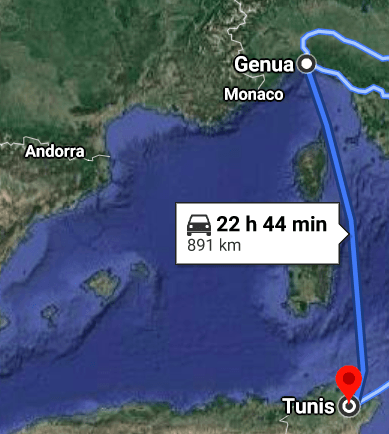 Nach einem italienischen Frühstück und kleinem Mittagessen kommt die afrikanische Küste in Sicht. Langsam nimmt die Küstenlinie Gestalt an und schließlich ist eine große Stadt an ihrer Dunstglocke erkennbar. Am späten Nachmittag fahren wir in den Hafen von Tunis ein. Auf dem Schiff bricht eine gewisse Unruhe aus, weil niemand die Fähre zuletzt verlassen will. Die Türen zum Fahrzeugdeck werden aber erst geöffnet, als die Fähre fest vertäut ist. Ein tiefes Rumoren und Vibrieren läuft durch das Schiff als das Ladebord geöffnet wird während wir die enge Treppe zu unseren Fahrzeugen heruntersteigen.