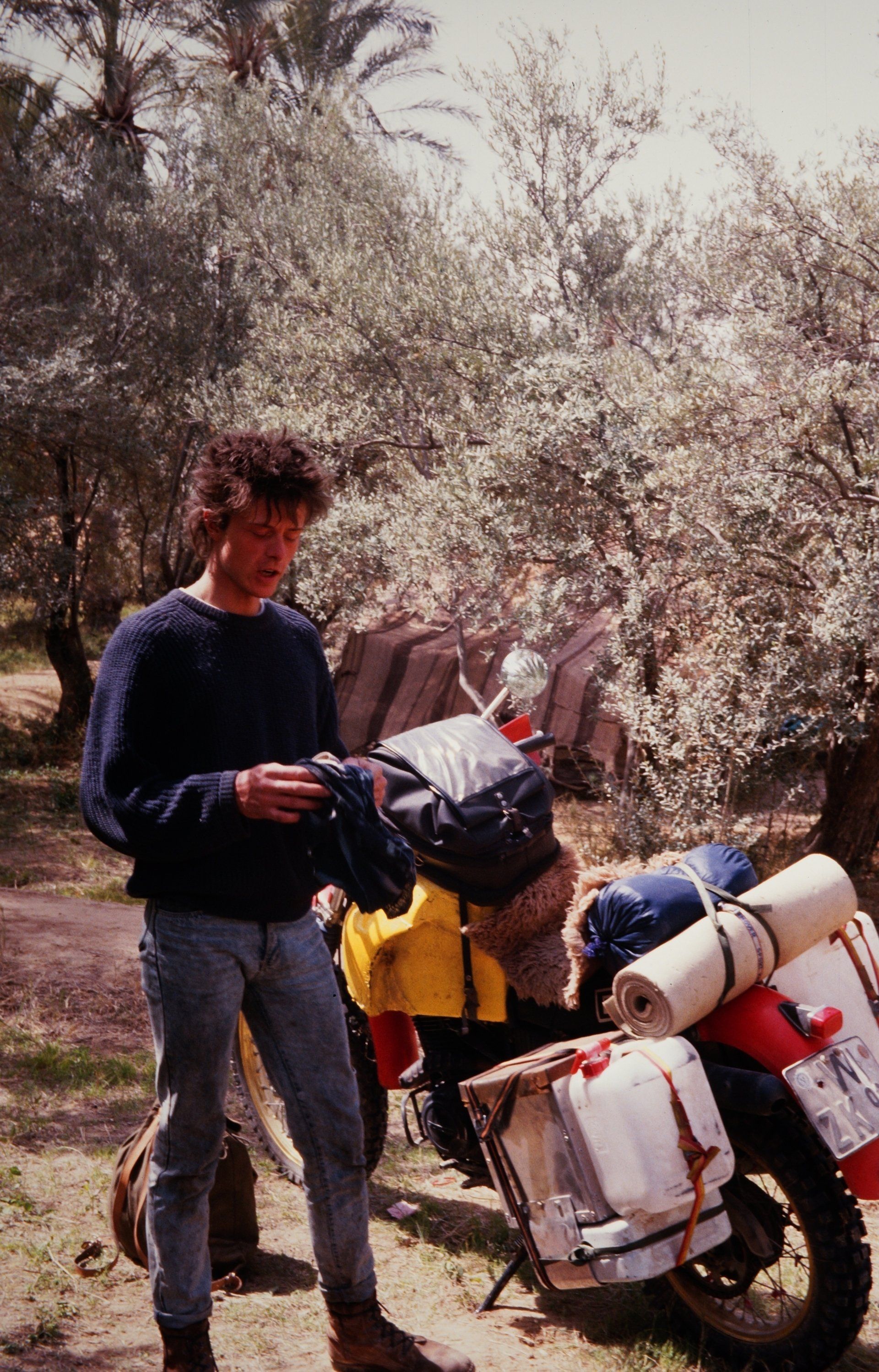 Mi., 9. März 1988, Tozeur, Campingplatz, Motorradwartung