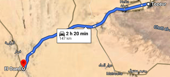 Troz der langen untätigen Nacht am Filmset sind wir relativ früh am Vormittag mit Aufpacken fertig, bezahlen unsere Rechnung am Campingplatz und machen auf dem Weg nach Algerien noch einen kurzen Stopp in unserem Stamm-Cafe in Tozeur. Der BMW-Fahrer von gestern sitzt auf der Terrasse. »Der ADAC ist informiert. Die melden sich heute Nachmittag im Hotel und sagen wie es weitergeht.« Ein Motorradfahrer vom Nebentisch ruft dazwischen, »Du bist mit nem Schutzbrief vom ADAC nach Nordafrika gefahren? Armer Irrer. Ehemalige französische Kolonien nur mit dem Schutzbrief der ›Europ Assstance‹!« - »Ich hab den Schutzbrief vom TCS, die sind spezialisiert auf Afrika.« - »Egal, ehemalige französische Kolonien nur mit dem Schutzbrief der ›Europ Assistance‹.« Die richtige Schutzbrief-Versicherung ist unter den Reisenden ein fast ebenso emotionales Thema, wie das der Motorradmarke.