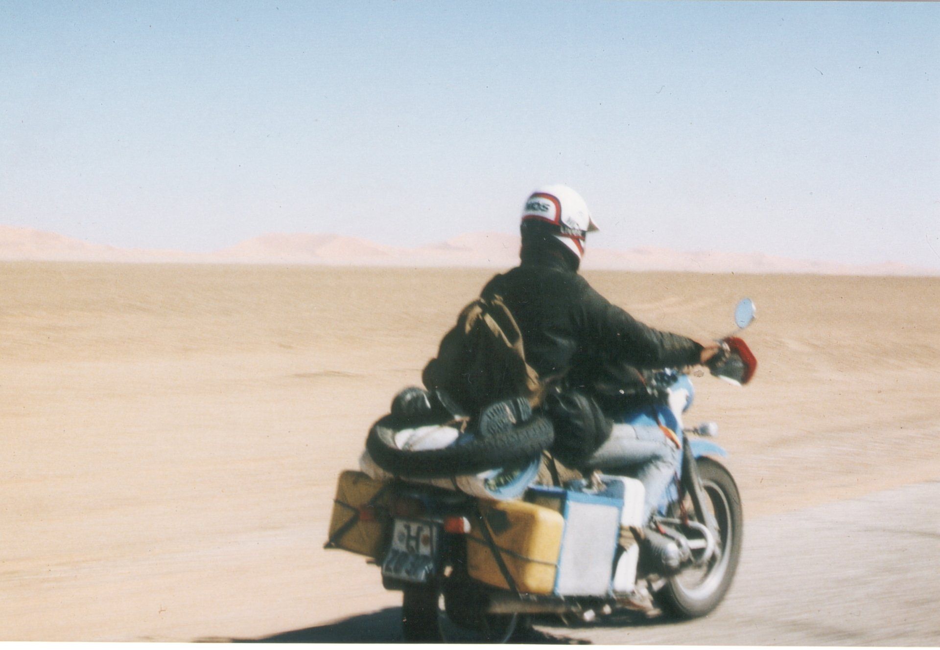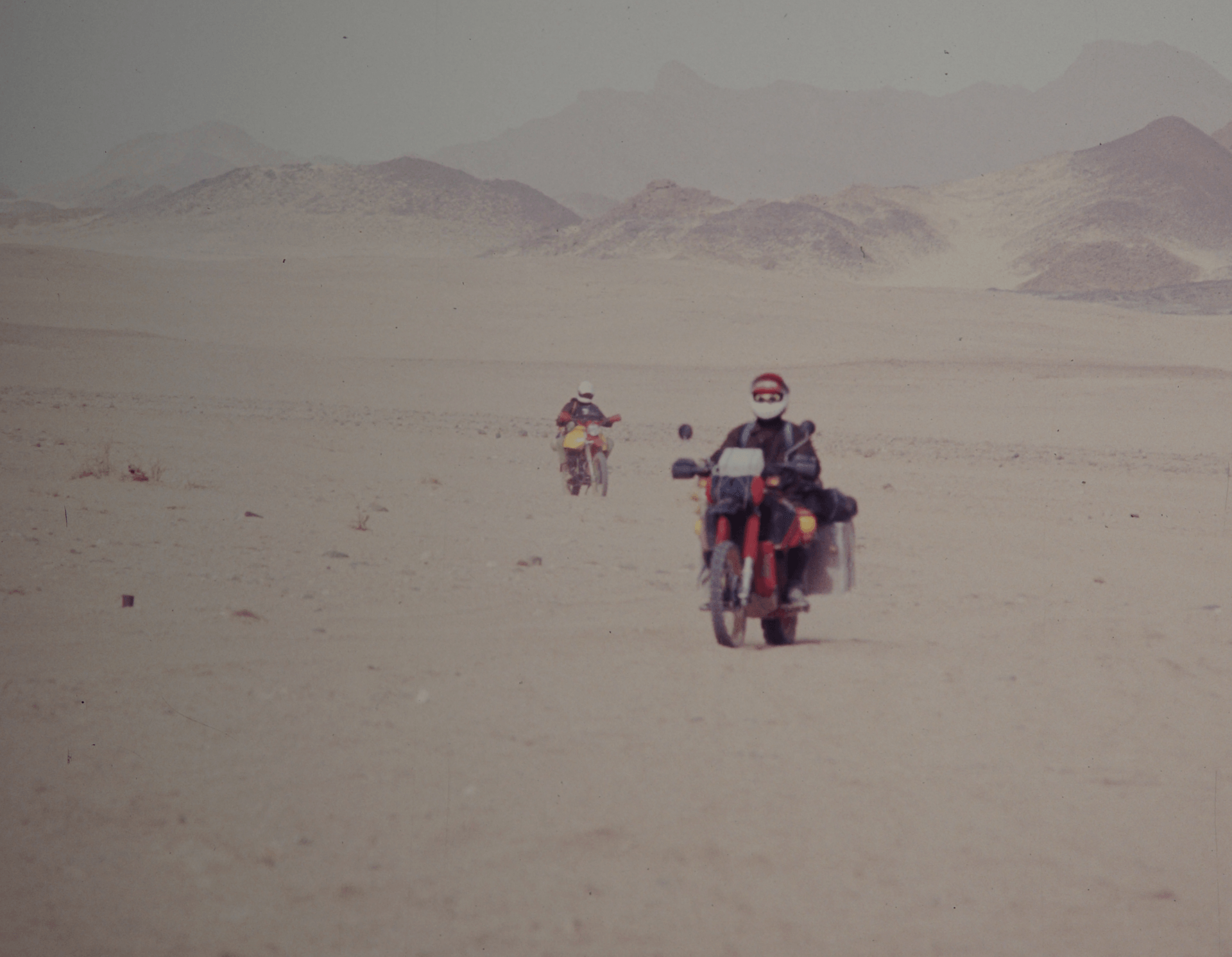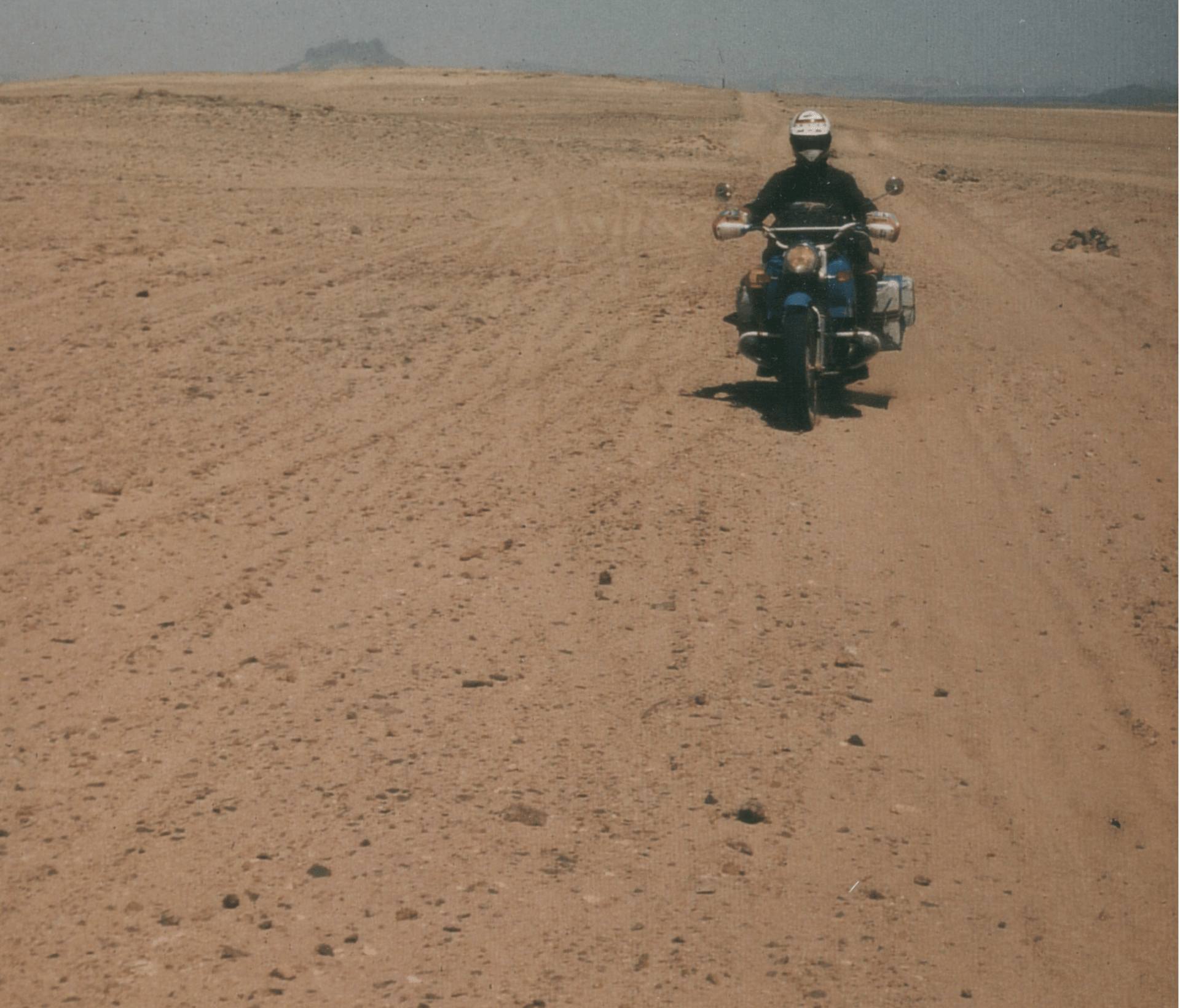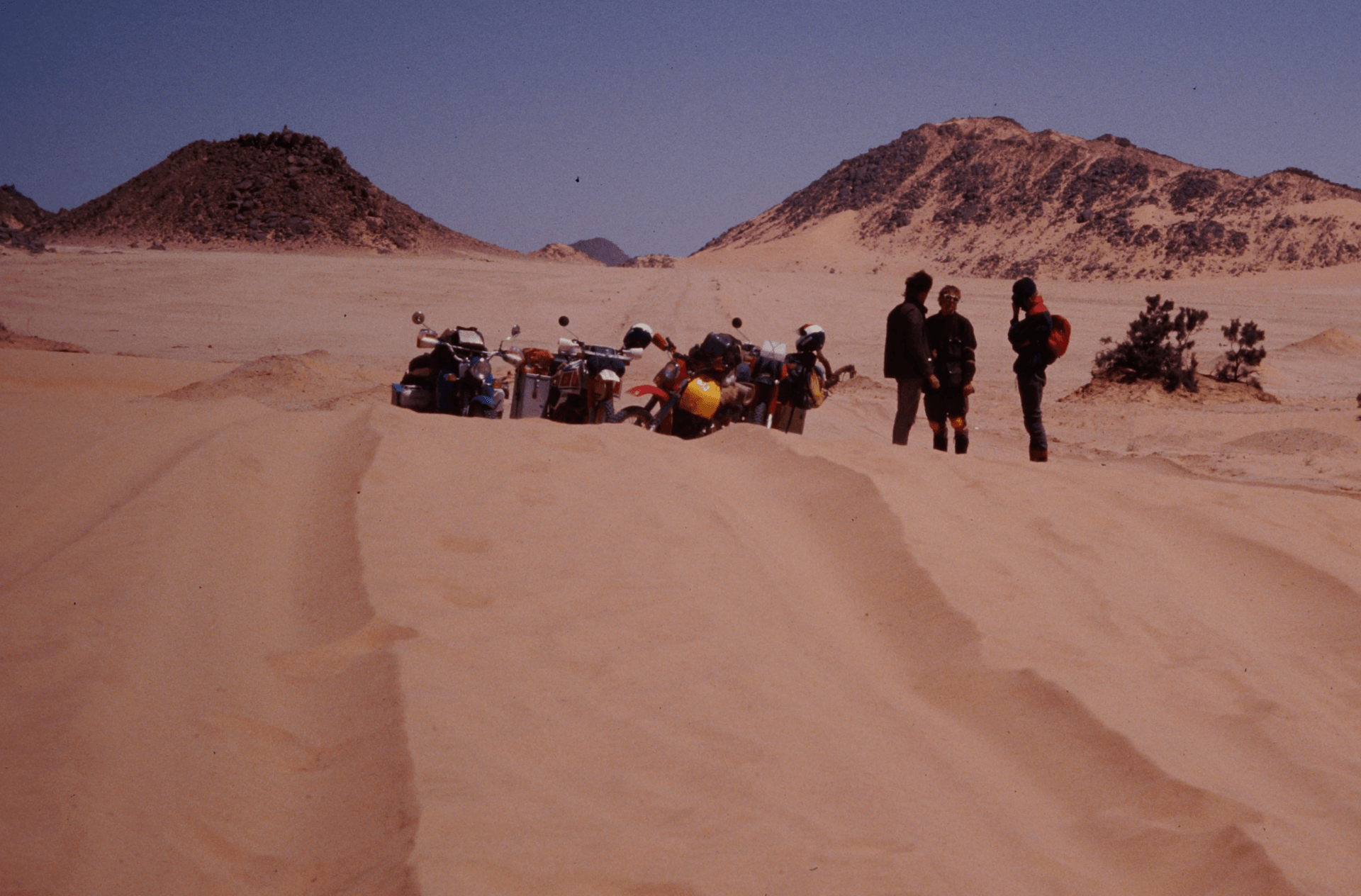 Den Sommer nach der Rückkehr aus dem Nahen Osten (s. 1987-Levante) habe ich mit Ande in Südfrankreich und Katalonien verbracht, schließlich hatte ich noch allerhand Zeit und trotz der teuren Rückfahrt per Fähre auch noch einiges Geld übrig. Ab Spätsommer war dann wieder Geldverdienen und Motorradoptimierung an der Reihe, denn schon während der Rückfahrt war klar, dass ich im kommenden Frühjahr den fehlenden Schlag der Reise im westlichen Nordafrika nachholen wollte – im arabischsprachigen Raum: ›da, wo die Sonne untergeht‹ = ›Maghreb›, das ›gh‹ ist ein norddeutsches Rachen-›R‹, das ›r‹ ein süddeutsches Zungen-›R‹ -. Im Herbst konnte ich dann meinen alten Kumpel Chrischi überreden, sein Sommersemester an der juristischen Fakultät der Uni Mainz leicht verspätet Ende April zu beginnen, so dass wir zusammen im März und April in die algerische Sahara reisen konnten. Über den Winter habe ich die Federung der BMW weiter optimiert, nebenbei wurde auch die Farbgebung von so-bunt-wie-möglich auf BMW-weiß-blau umgestellt, vor allem aber der Motor grundlegend umgebaut. Die BMW hatte nun ca. 860 ccm Hubraum, ca. 50 PS und ein erschreckendes Drehmoment, außerdem konnte wegen der geringeren Verdichtung praktisch jede Art von Benzin getankt werden. Die Räder und Reifen und den Gepäck- und Vorratstransport habe ich so belassen, wie es sich 1987 im Nahen Osten bewährt hatte.