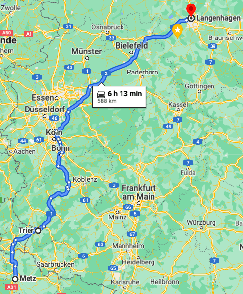 Wir versuchen, ihm zu erklären, dass wir ja sowieso Deutschland auf dem schnellsten Weg verlassen wollen und am Wochenende schon in Afrika sind. Er versucht großzügig zu wirken und schlägt vor, dass wir einen Autoreisezug nach Österreich oder besser Italien buchen und noch bis zum Bahnhof von Kassel fahren dürfen und er erstmal nichts weiter unternimmt, aber alle Kollegen zwischen hier und Österreich informieren wird, und uns, falls wir doch weiterfahren, ›die Härte des Gesetzes treffen‹ wird. Wir stimmen zunächst zu, fahren nicht zurück auf die Autobahn, sondern nehmen die Ausfahrt nach Kassel. Auf der Landstraße biegen wir dann aber nicht nach rechts Richtung Stadt, sondern nach links zum Rasthof in nördlicher Richtung ab. Dort halten wir wieder, trinken noch einen Kaffee und diskutieren die Lage.